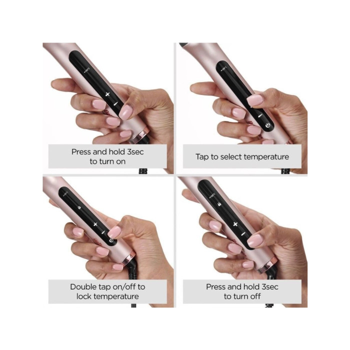 Робоча поверхня з керамічним покриттям рівномірно розподіляє тепло й дбайливо впливає на структуру волосся. Максимальна температура нагріву становить 190°C, а 4 температурні режими (145°C, 160°C, 175°C, 190°C) дозволяють підібрати оптимальні налаштування для різних типів волосся — від тонкого й ослабленого до густого та жорсткого. Функція іонізації допомагає зменшити пухнастість, надає волоссю гладкості та природного блиску.