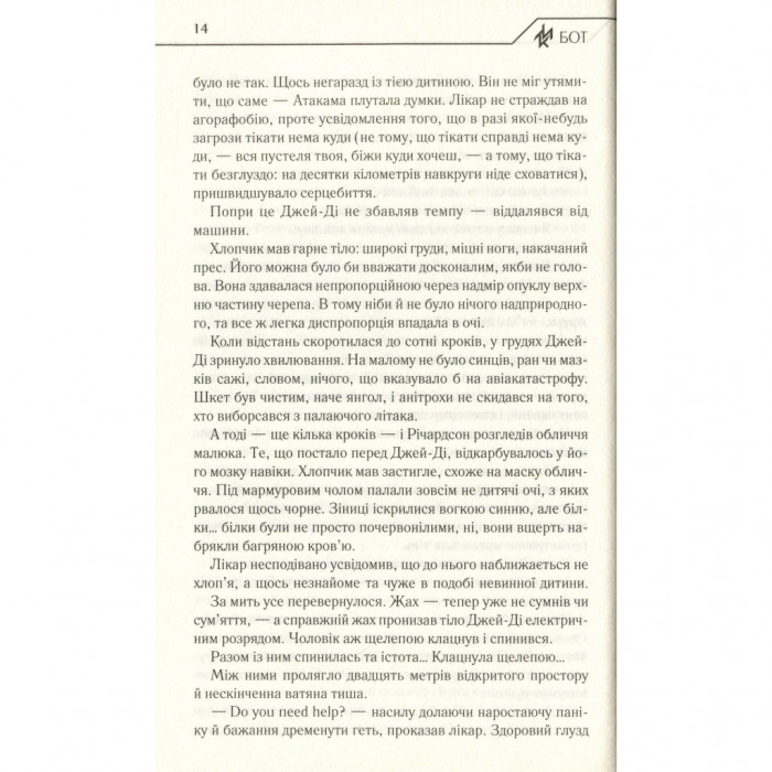 Якби київський програміст Тимур устиг прочитати лист із попередженням від незнайомки, то не став би вбивцею мимоволі, тікаючи від хлопчиків-ботів із кривавими очима. Не він випустив джина з пляшки в чилійській пустелі, та й узагалі не дуже знався на нанотехнологіях і заборонених експериментах над людьми... Просто, коли ти вмієш дуже добре виконувати свою роботу, чекай, що хтось неодмінно тебе використає. І ти виявиш у собі те, про що досі не здогадувався…