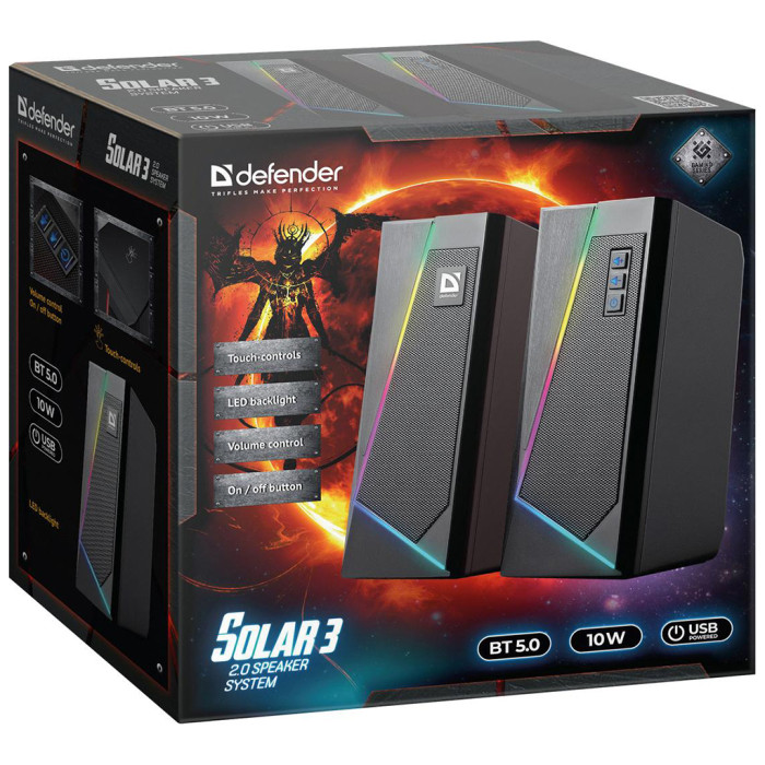Обравши Defender Solar 3, ви отримуєте не просто акустичну систему, а функціональний та стильний гаджет, який оптимально поєднує в собі якість звуку, зручність у використанні та довговічність. Така система подарує вам чудову можливість насолоджуватися улюбленою музикою без зайвих зусиль і з максимальним комфортом.