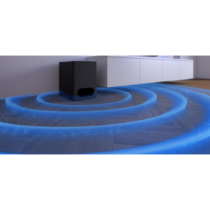 Особливістю цієї моделі є бездротове підключення акустичної системи та сабвуфера, що забезпечує зручність у використанні та естетичний вигляд без зайвих дротів. Додаткові можливості, такі як HDMI-CEC та пульт дистанційного керування, роблять управління системою простим та інтуїтивно зрозумілим.