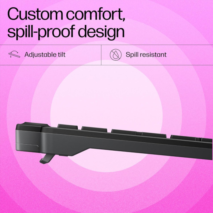 Клавіатура підтримує англійську та українську розкладки, що є суттєвою перевагою для тих, хто регулярно перемикається між мовами. Більше того, можливість регулювання нахилу та низькопрофільні клавіші створюють надзвичайний комфорт навіть при тривалому використанні. Програмовані функціональні клавіші через HP Accessory Center дозволяють налаштувати до 12 функцій відповідно до ваших уподобань, відкриваючи нові горизонти персоналізації.