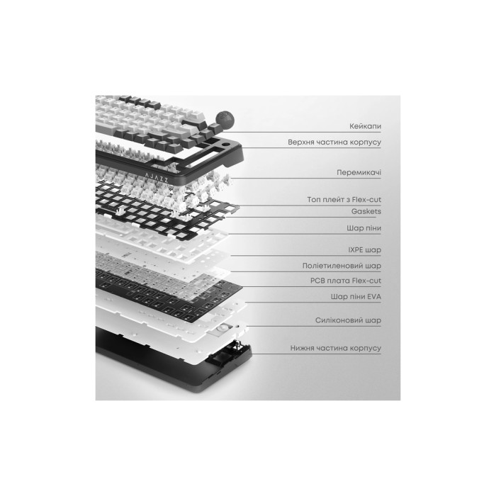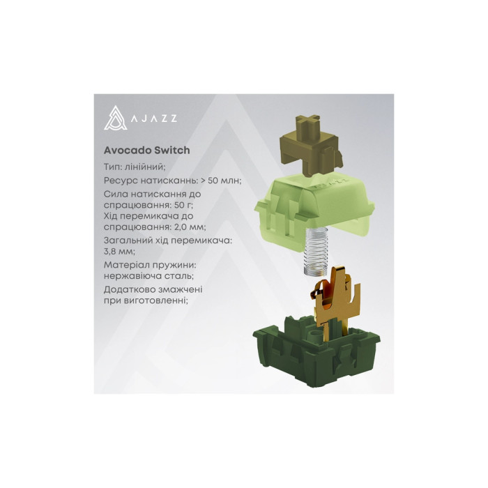 Ключовою особливістю є використання механічних лінійних перемикачів Avocado Switch, які забезпечують плавне, швидке і тихе натискання клавіш, надаючи відмінну тактильну віддачу. Завдяки цим перемикачам, кожен набір тексту чи ігровий сеанс стане задоволенням з неперевершеним відчуттям комфорту. Крім того, клавіатура підтримує змінні клавіші, що відкриває можливості для кастомізації та надання вашій клавіатурі унікального вигляду.