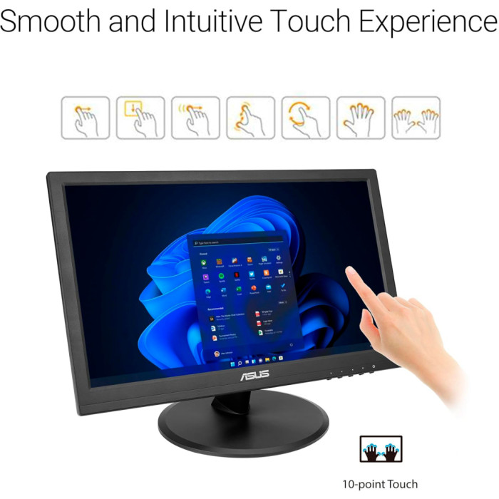Підсумовуючи, монітор ASUS VT169HE є втіленням досконалості в кожній деталі. Завдяки винятковій якості зображення, інтуїтивно зрозумілому сенсорному інтерфейсу та продуманій ергономіці, цей пристрій стане незамінним вибором для тих, хто цінує високі технології та комфорт в одній стильній та функціональній упаковці. Незалежно від того, чи ви працюєте в офісі чи займаєтесь творчістю вдома, ASUS VT169HE завжди буде вашим надійним партнером у досягненні успіху.