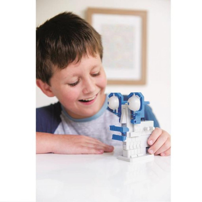 Зберіть роботизовану голову з цим набором. Очі робота можуть рухатися з боку в бік, а щелепи відкриватися і закриватися.