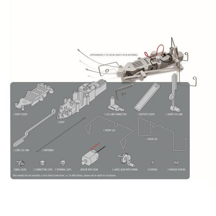 Зібрати цього робота-комаху зовсім не складно. Він демонструє механізми роботизованого руху: повзе, звивається і ходить. Набір має нагороди спеціалізованих виставок.
