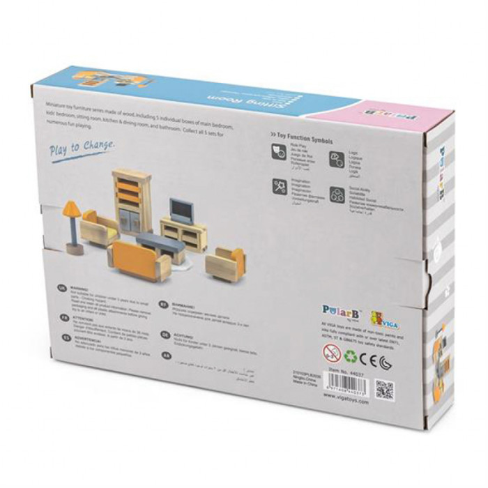 Ігровий набір Viga Toys Дерев'яні меблі для ляльок PolarB Вітальня (44037)