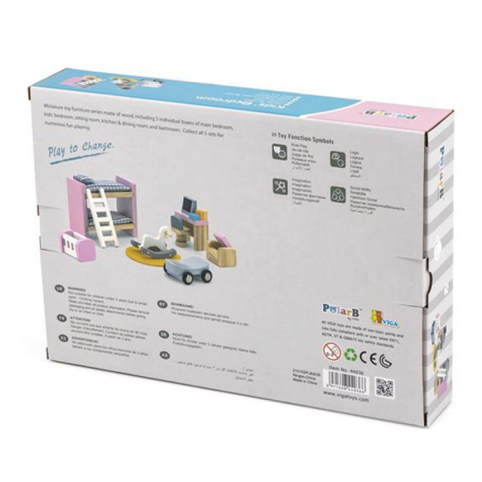 Ігровий набір Viga Toys Дерев'яні меблі для ляльок PolarB Дитяча кімната (44036)