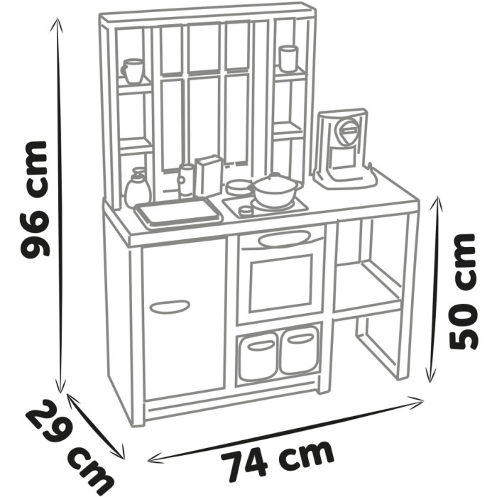 Ігрова кухня пропонує велику ігрову зону, щоб кілька дітей могли грати разом, але вона не займає надто багато місця завдяки своїм одночасно компактним розмірам.