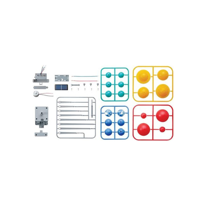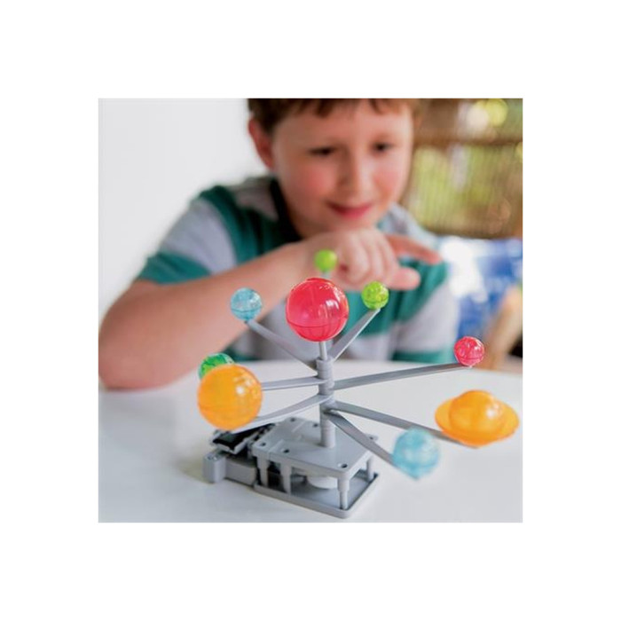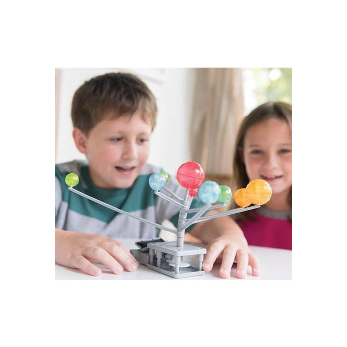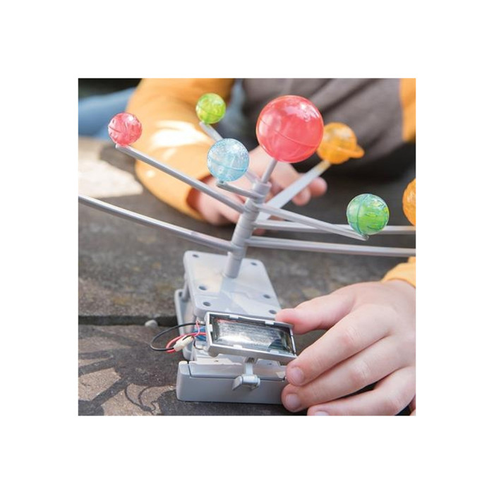 Зберіть модель за інструкцією. Усі необхідні інструменти та деталі, крім батарейки, є в наборі. Встановіть перемикач режиму живлення в положення «сонячна батарея» та розташуйте модель сонячної системи таким чином, щоб на неї потрапляла максимальна кількість світла. Коли батарея зарядиться, ви побачите, як планети почнуть обертатися навколо Сонця. Якщо світла недостатньо, використовуйте живлення від батарейки.