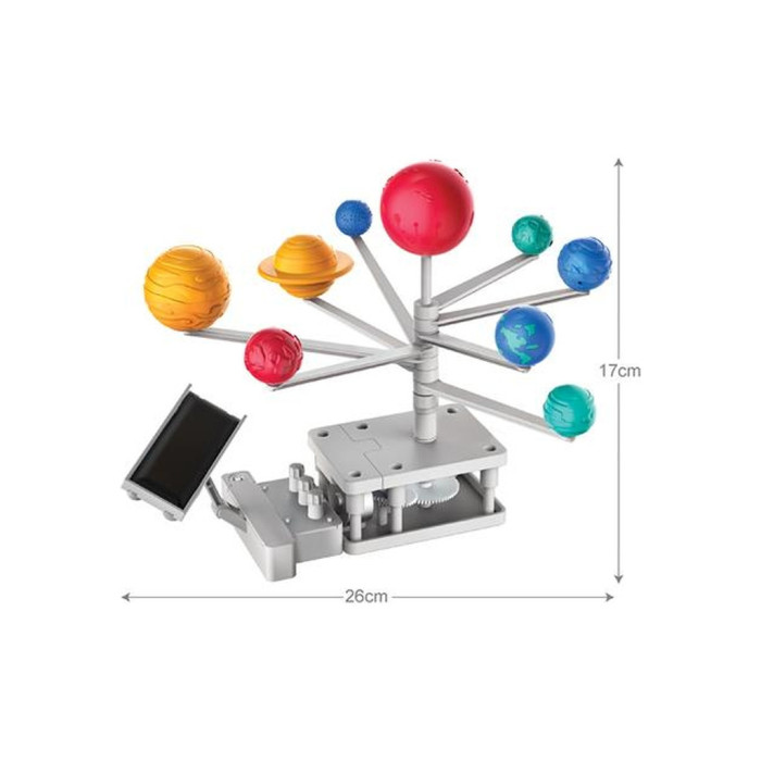 Хочете на власні очі побачити, як обертаються планети навколо Сонця? Для цього необов'язково відправлятися у космос! Кожен, хто полюбляє астрономію, відтепер може самостійно зібрати модель сонячної системи з планетами, які рухаються. До того ж, мотор працює як від батарейки AAA, так і від сонячного світла.