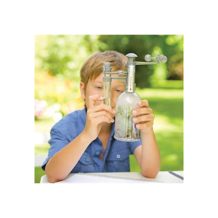 Цікава особливість набору із серії Green Science – це інструкція зі створення власної оранжереї всередині пляшки метеостанції. Оранжерея дозволить на власні очі побачити, як циркулює вода в атмосфері, як рослини переробляють вуглекислий газ на кисень.
