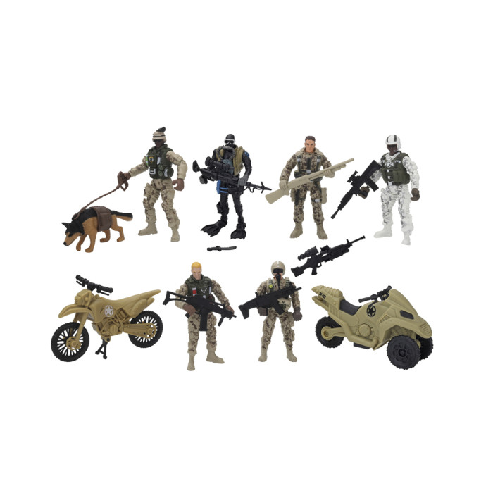 6 фігурок (солдатиків); 1 сторожовий пес; 2 транспортні засоби; аксесуари
