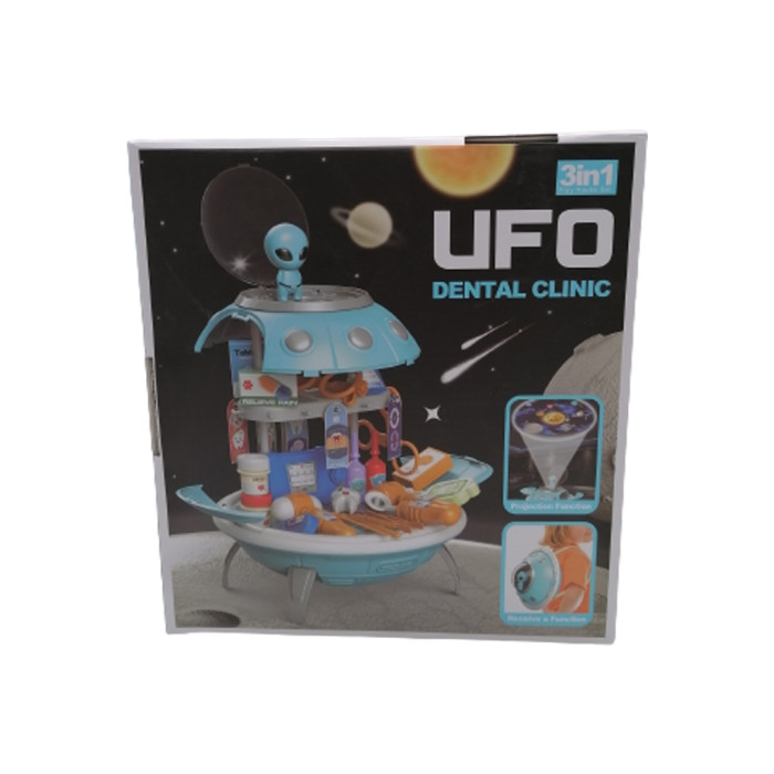 Ігровий набір UFO Projection Dental Clinic пропонує вашим дітям можливість не тільки розважатися, а й поринути у захоплюючу роль стоматолога. За допомогою цього набору ваша дитина зможе весело і креативно вивчати основи стоматології, розвиваючи при цьому свою фантазію і моторику. Що входить до цього дивовижного набору? Перед вами широкий асортимент інструментів та аксесуарів, які роблять гру максимально реалістичною. Дитина знайде зубну щітку, зубну пасту, дзеркало, шпатель та інші інструменти для пацієнта! Він зможе грати разом із друзями або наодинці, вдаючи стоматолога, вивчаючи та імітуючи процедури, які виконуються в стоматологічній клініці. Наші ігрові набори UFO Projection Dental Clinic створені за допомогою передових технологій, щоб запропонувати вашій дитині максимально реалістичний досвід. Кожен інструмент має ергономічний дизайн, розроблений з урахуванням маленьких дитячих ручок та пальчиків, щоб ваша дитина відчувала себе комфортно під час гри. Комплект включає 41 деталь: Інструменти 12 шт, ліки 9 шт Ремінь, 18 наклейок 5 паперових оголошень Інопланетянин 3 батареї Проектор Можливості розвитку вашої дитини з використанням ігрового набору UFO Projection Dental Clinic безмежні. Вона зможе розвивати навички дрібної моторики, координації рухів, а також покращувати свої комунікативні та соціальні навички, граючи лікаря та пацієнта. Рольові ігри стимулюють уяву та творчість, що важливо для розвитку дитячого інтелекту. Ігровий набір UFO Projection Dental Clinic ідеально підходить для дітей віком від 3 до 8 років. Він не тільки захопить їх на довгий годинник, а й допоможе їм освоїти основи стоматології, турботи про здоров’я порожнини рота та гігієни. Граючи з набором UFO Projection Dental Clinic, ваша дитина буде готова до відвідування стоматолога і знатиме, що це не страшно і безпечно