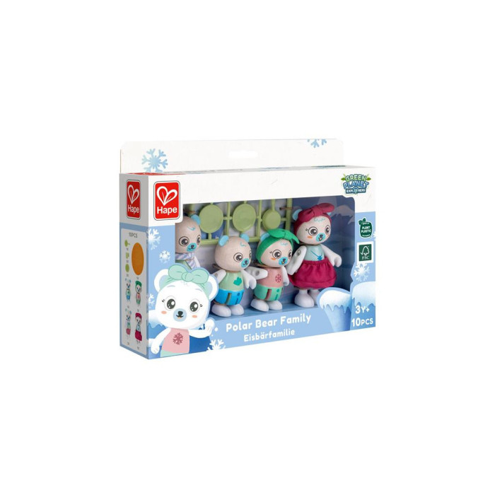 Фігурки виготовлені з використанням деревини, сертифікованої FSC, та цукрової тростини. Це чудовий спосіб прищепити відповідальність за довкілля з раннього віку. Ігровий набір Hape Сім'я білих ведмедиків чудово доповнить ігри з ляльковими будиночками.