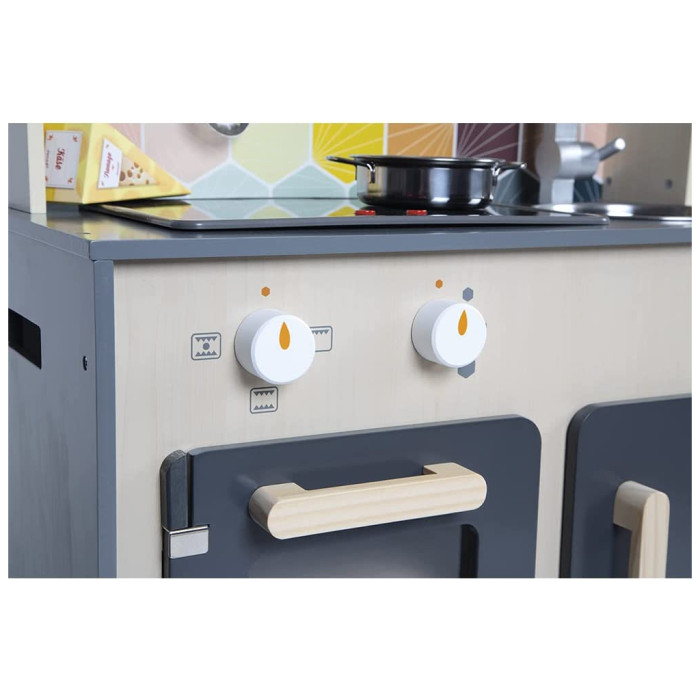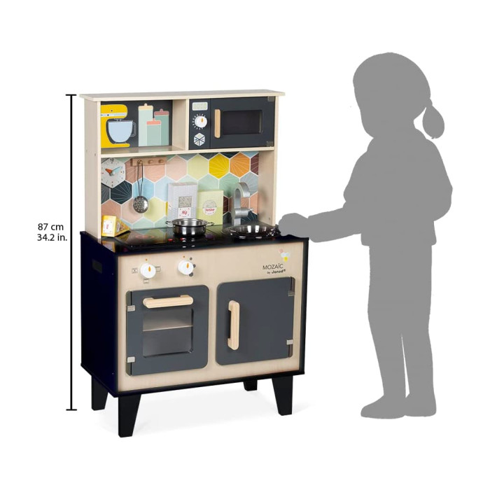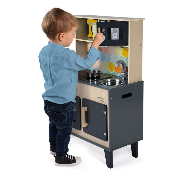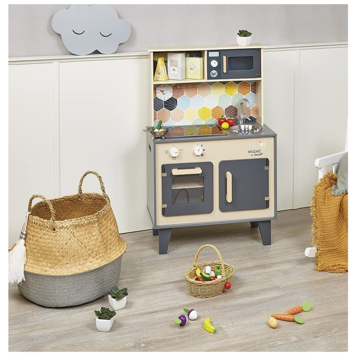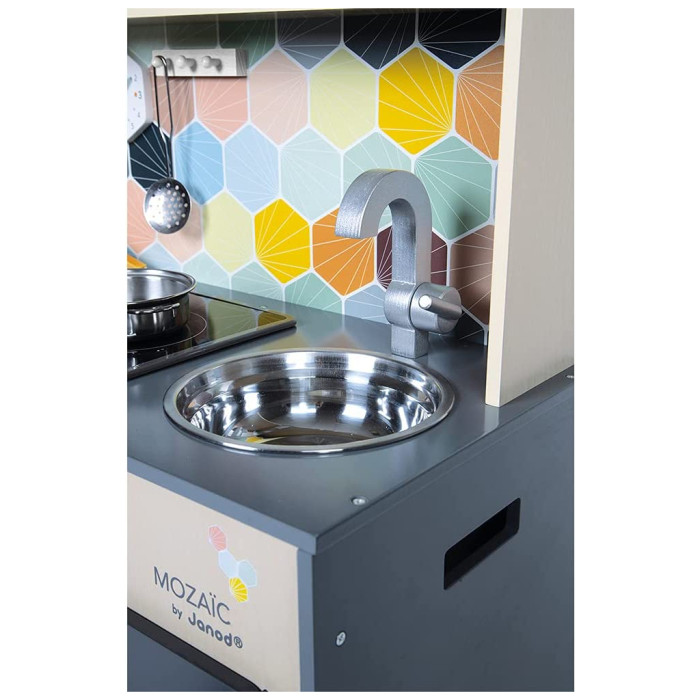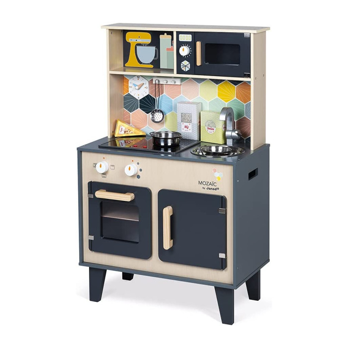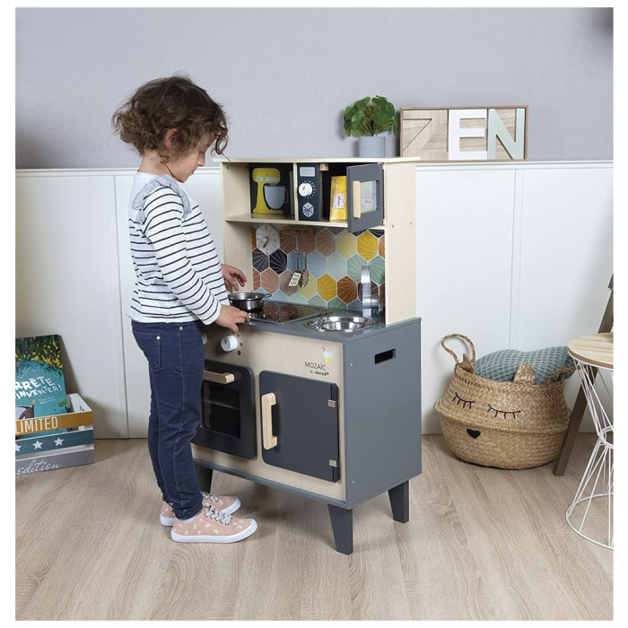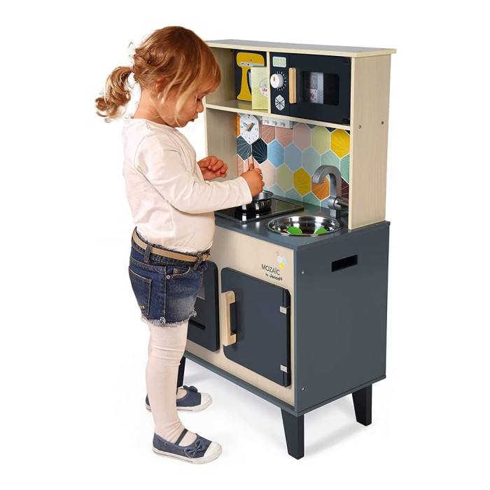 Janod Mozaіс - дитячий кухонний гарнітур зі справжнім характером. Красиве поєднання натурального дерева, чорної фарби та кольорової мозаїки надає іграшці дійсно стильний вигляд. Діти, які творять на такій кухні, обов'язково придумають кілька новаторських рецептів. Так що дайте волю їх уяві та подивіться, як далеко може понести їх натхнення від мами й тата.
