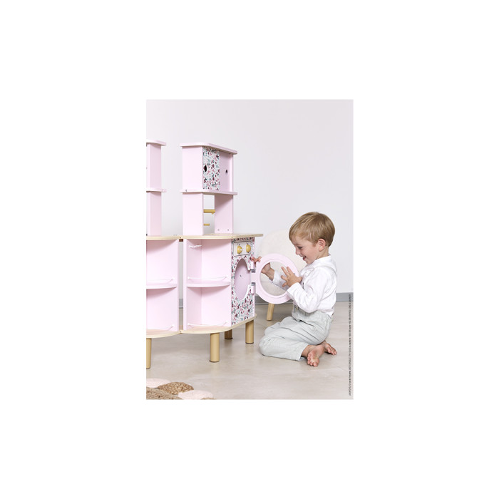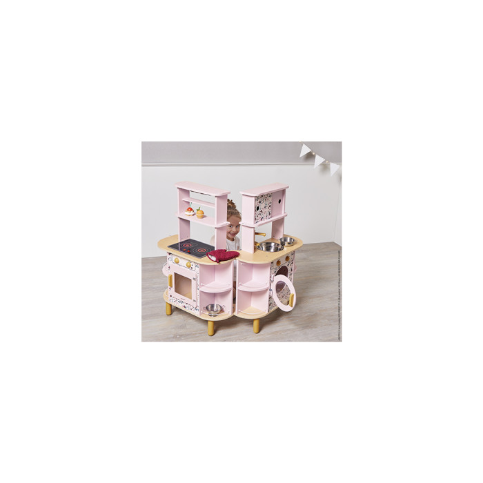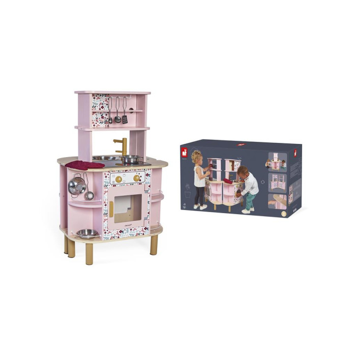 Ігровий набір Janod Кухня рожева двостороння – це стильна та функціональна іграшкова кухня, що пропонує дітям різноманітні можливості для захопливих рольових ігор. Цей двосторонній комплект виконаний у ніжних рожевих тонах і доповнений безліччю аксесуарів, які роблять гру ще цікавішою та реалістичнішою. У кухні є все необхідне для приготування «страв»: лопатка, ложечка, каструля, сковорідка, дуршлаг і прихватка.