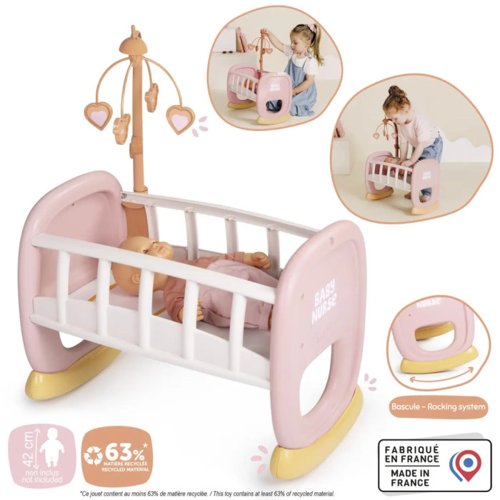 Ігровий набір Smoby Колиска Бебi Ньорс. Терракотова пудра з мобілем, 18 міс. (7600220390)