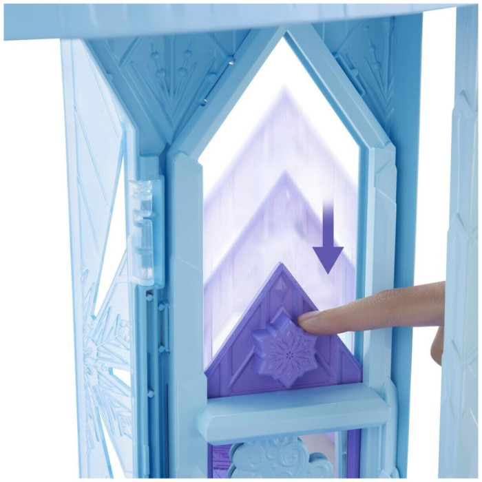 Замок Ельзи заввишки близько 76 см забезпечує круговий доступ до всіх 5 ігрових зон: затишної спальні з прихованим ліжком, світлої їдальні, балкона для мрій, урочистої зали з люстрою-сніжинкою, що обертається, та дзеркальної зони з трюмо.