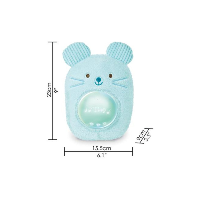 Дозвольте цій милій мишці заколисувати малюка замість вас. Ви навіть можете почати грати ще до народження дитини, прикладаючи іграшку до живота та записуючи різні звуки, які малюк запам'ятає.
