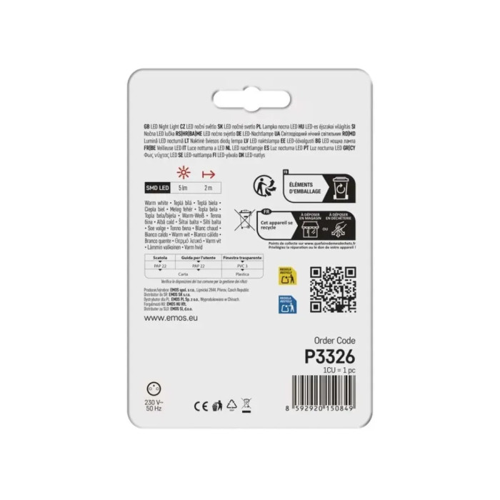 Нічник EMOS 5Lm 230V пластик (P3326)