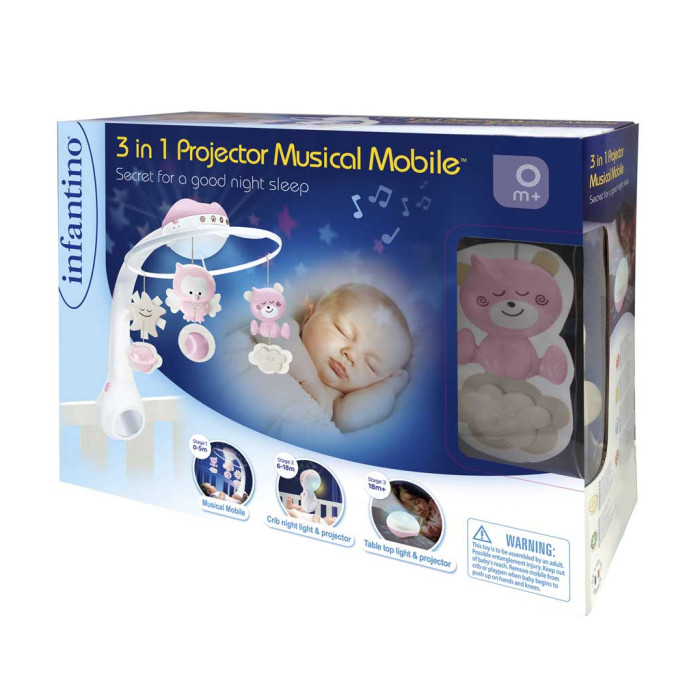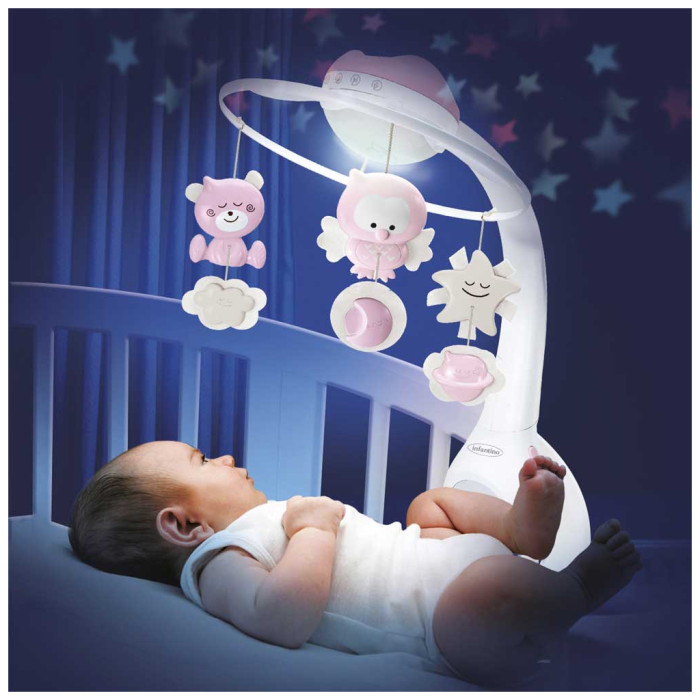 Для малюків у перші 6 місяців особливо важливий здоровий сон. Нічник проектор Інфантіно – краще рішення. Рожевий мобіль 3 в 1 створений для дітей до року. Він доповнений милими фігурками ведмедиків і совенят, а світильник нічник проектує на стелю загадкове зоряне небо. Особливості нічника для новонародженого від Infantino Для малюка з перших днів життя важливо не боятися засипати, і для цього мобіль 3 в 1 від Інфантіно підходить найкраще. Нічник світильник забезпечує малюкові: приємні звуки природи (4 варіанти) для комфортного засипання; спокійні мелодії для малюка (6 варіантів); зручне кріплення до дитячого ліжечка; безпечний матеріал: перероблений пластик. Нічник на батарейках відрізняється приємним зовнішнім виглядом й універсальністю. Він сподобається дітям від 1 року та старше. Буде служити 2 роки та більше. Призначений: для хлопчика або для дівчинки; для засинання і пробудження; для використання у дитячій. Світильник нічник Інфантіно – улюблений компаньйон дитини під час тихої години!