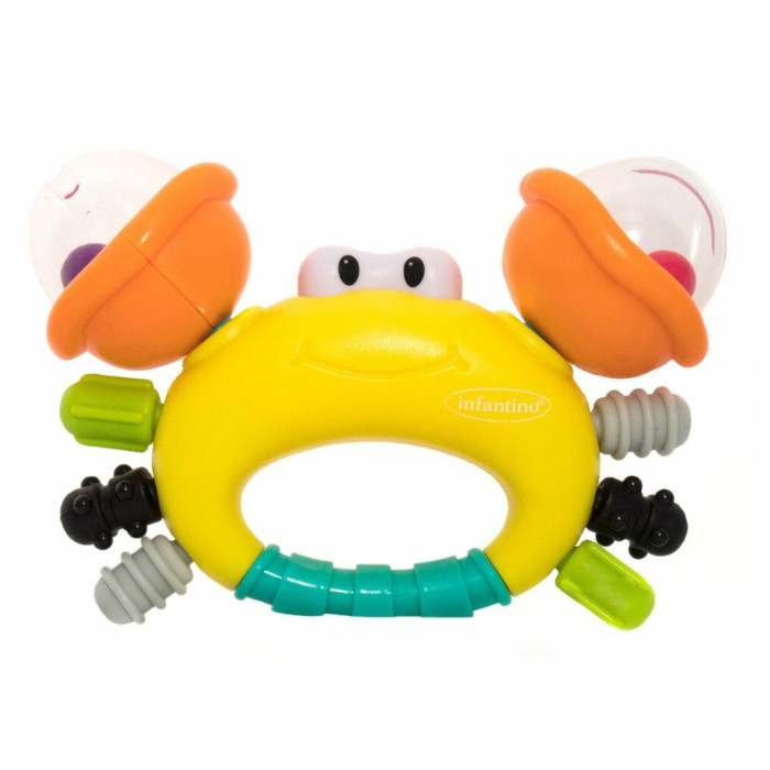 Брязкальце та прорізувач для зубів Містер Краб від бренду Інфантіно може стати улюбленою іграшкою для малюка. Сучасні розвивальні іграшки для новонароджених, зокрема прорізувачі, підходять дитині будь-якої статі. Містер Краб для хлопчика та для дівчинки стане другом з перших днів життя. Завдяки зручній формі та привабливому зовнішньому вигляду виріб стане улюбленою іграшкою для дитини до 1 року. Переваги брязкальця для новонародженого від Infantino Граючи крабом, малюк до 6 місяців стимулює пальчики, вчиться сприймати предмети за кольором і формою. Щоб використовувати іграшку як прорізувач, її наповнюють водою та поміщають у холодильник. Особливості брязкальця-гризунка для малюків: продумана форма; текстурна поверхня; соковиті кольори; рухливі деталі; наявність прорізувача; безпечний матеріал виготовлення. Під час неспання вдома й на прогулянці прорізувачі для дітей до року будуть займати дитину. У 2 роки використовувати їх вже не потрібно. Брязкальця-гризунки для дітей з перших місяців життя від Infantino – це улюблені іграшки, які дарують радість і несуть користь!