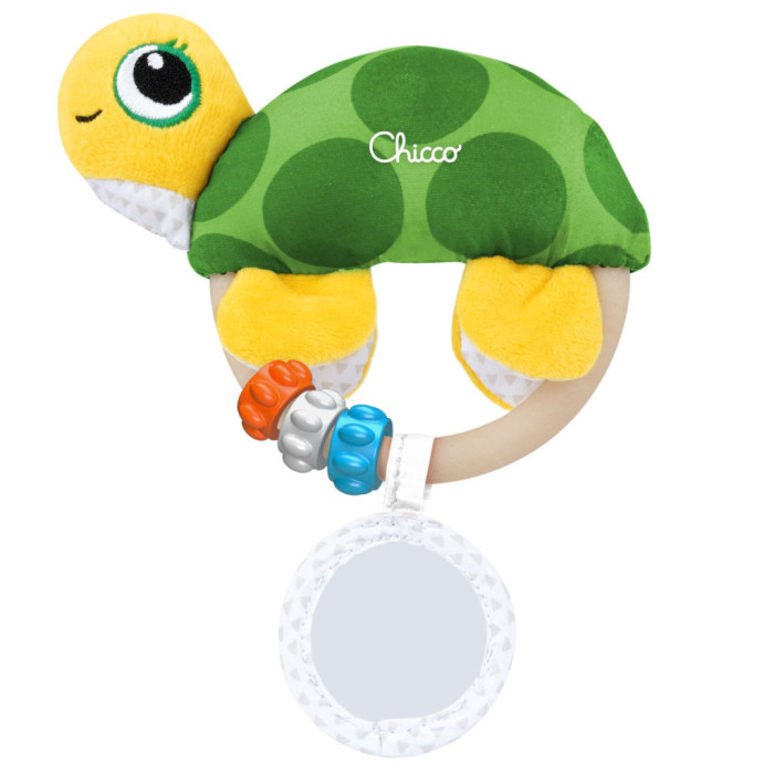 сприяє розвитку хапальних навичок, дрібної моторики, зорового та слухового сприйняття;черепашка з брязкальце всередині при струшуванні видає характерний звук;текстурні кільця можна обертати та пересувати;безпечне дзеркальце створює захоплюючі ефекти;основу у вигляді кільця зручно тримати у маленьких ручках;рекомендовано для дітей від народження;дозволено делікатне прання в пральній машині при 30°C.
