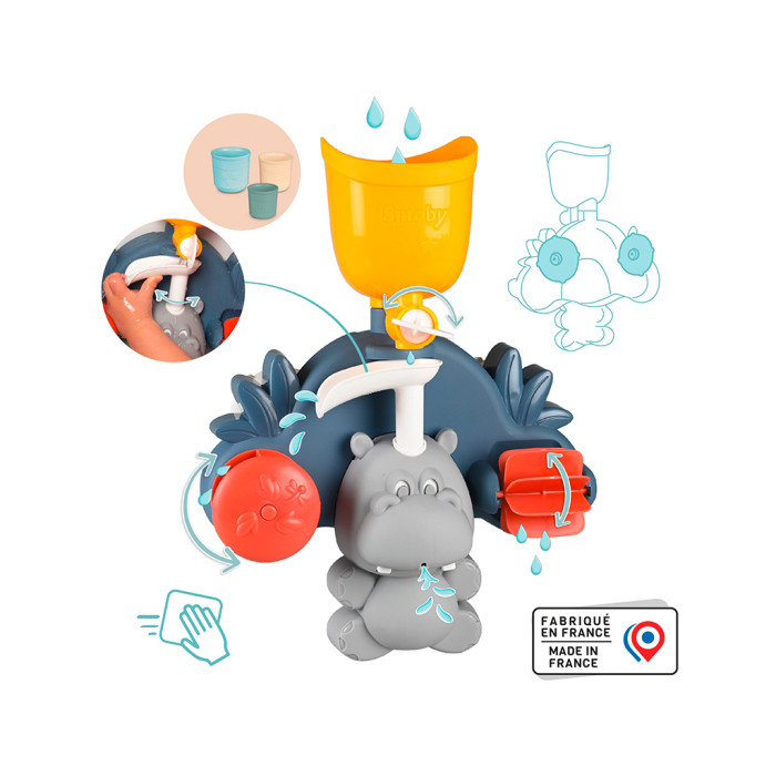 Іграшка для ванної Smoby Little Водяний млинок. Бегемот", з аксесуарами (140405)
