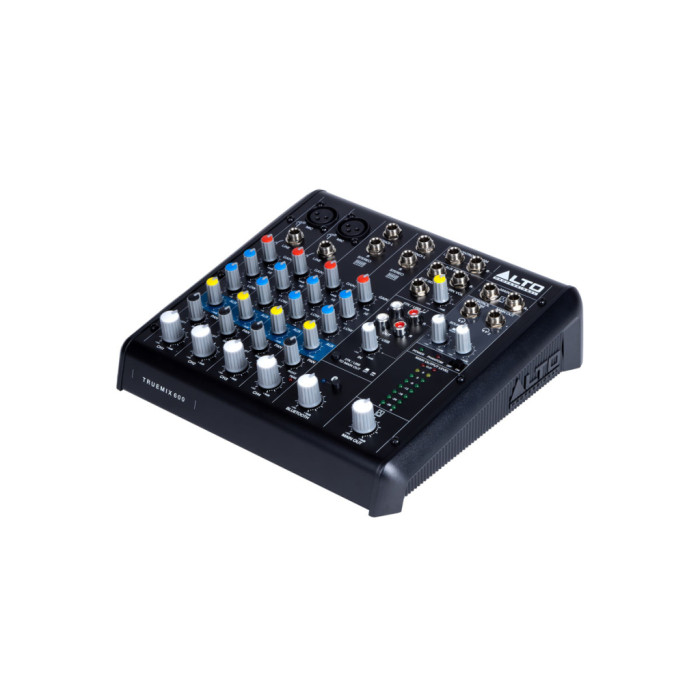 Alto Professional TrueMix 600 - це портативний аудіомікшер з Bluetooth та вбудованим USB аудіоінтерфейсом, який надає всі основні функції, необхідні для домашнього запису, потокового мовлення, підкастингу або виступів. TrueMix 600 має виділений канал Bluetooth для зручної потокової передачі з ваших смарт пристроїв. Bluetooth також підтримує сполучення телефонів без зворотного зв'язку, використовуючи технологію mix-minus, функцію, яку не підтримує жодна інша серія аудіомікшерів цього класу. Є шість аналогових входів з великим запасом потужності для мінімізації шуму і обмеження сигналу. Вхідні мікрофонні канали оснащені входами XLR, які відмінно підходять для підключення динамічних або конденсаторних мікрофонів з фантомним живленням 48 В. Ці канали мають симетричні лінійні входи ¼ дюйма для підключення інструментів та інших сигналів лінійного рівня. Також є два стереовхідних канали, кожен з яких має два балансні ¼-дюймові TRS-входи. Ці входи ідеально підходять для джерел звуку лінійного рівня. Всі канали оснащені двосмуговим еквалайзером з ручками з колірним кодуванням, які дозволяють легко налаштувати ідеальний звук при роботі в умовах низького освітлення. Підключення TrueMix 600 до вашого комп'ютера також відбувається блискавично завдяки можливості підключення Plug and Play у Windows та macOS. TrueMix 600 — це багатофункціональний компактний аудіомікшер, який ідеально підходить для використання в дорозі.