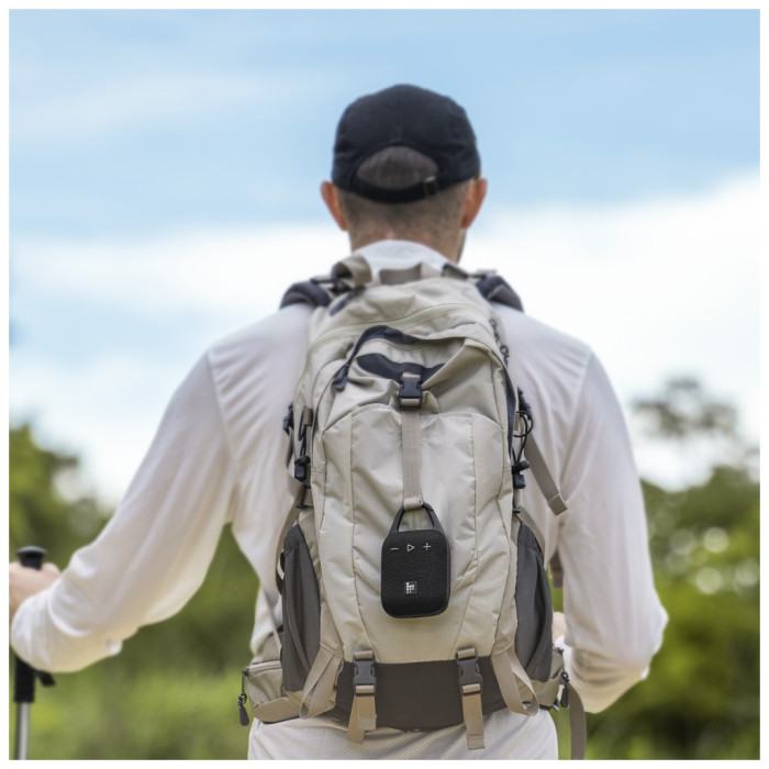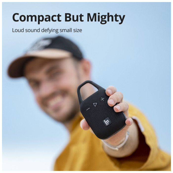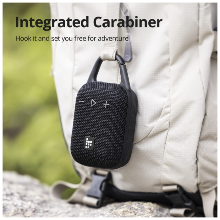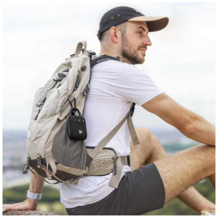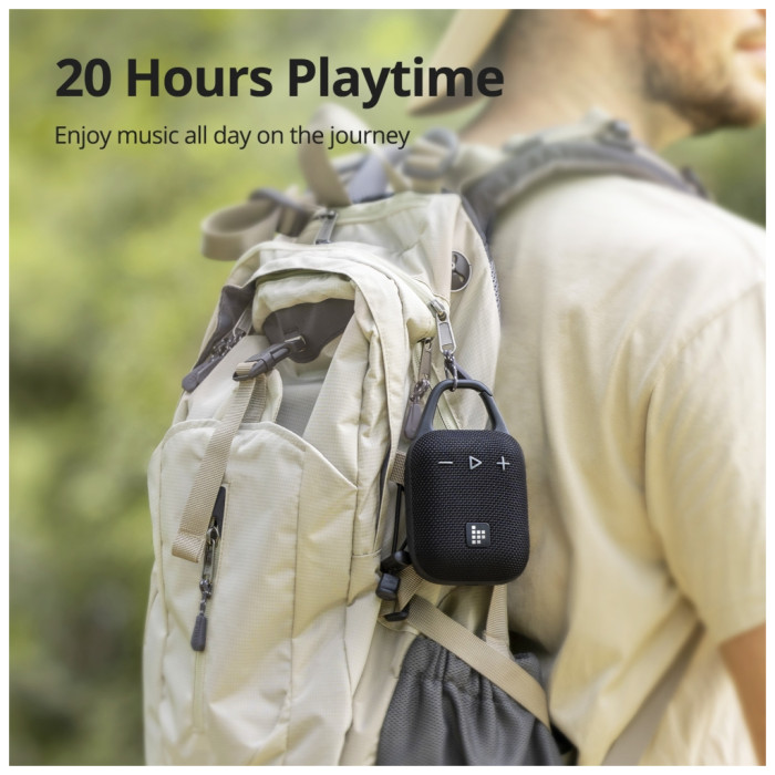 Ця акустична система має ємний акумулятор, який дозволяє насолоджуватися музикою протягом 20 годин безперервно. Така автономність дозволяє брати колонку у будь-які подорожі, навіть у найвіддаленіші куточки, щоб розважатися без обмежень. Зручний карабін із широким отвором дозволяє легко прикріпити пристрій до рюкзака або велосипеда, звільняючи руки під час активного відпочинку.