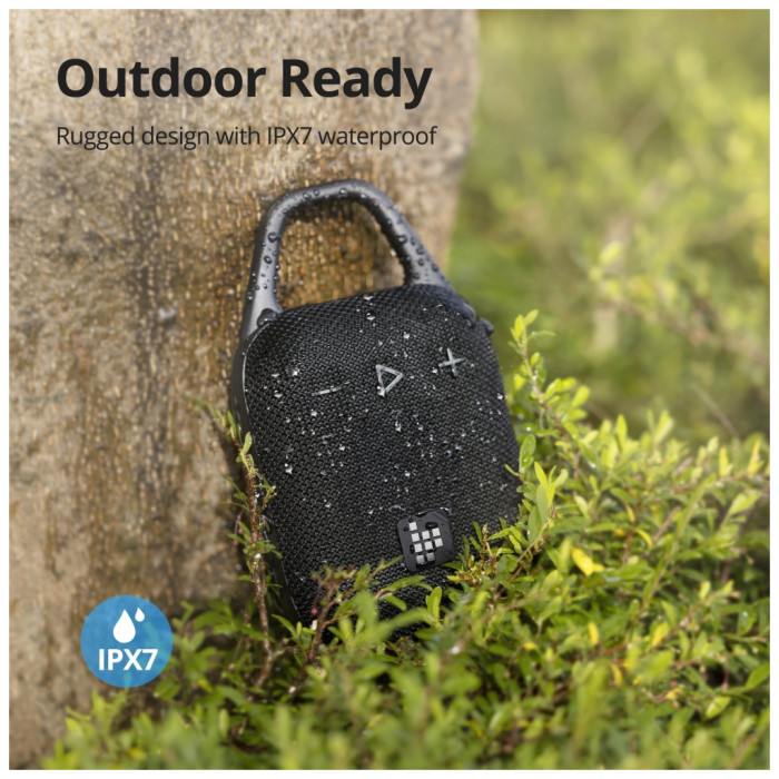Особлива увага приділена функціональності та захисту Tronsmart Mirtune H1. Її водонепроникний корпус з класом захисту IPX7 робить пристрій ідеальним для використання в будь-яких умовах, включаючи дощ, бризки та навіть короткочасне занурення у воду. Надійний пластик та гума не лише забезпечують захист від фізичних пошкоджень, але й роблять колонку стильною та привабливою на вигляд.