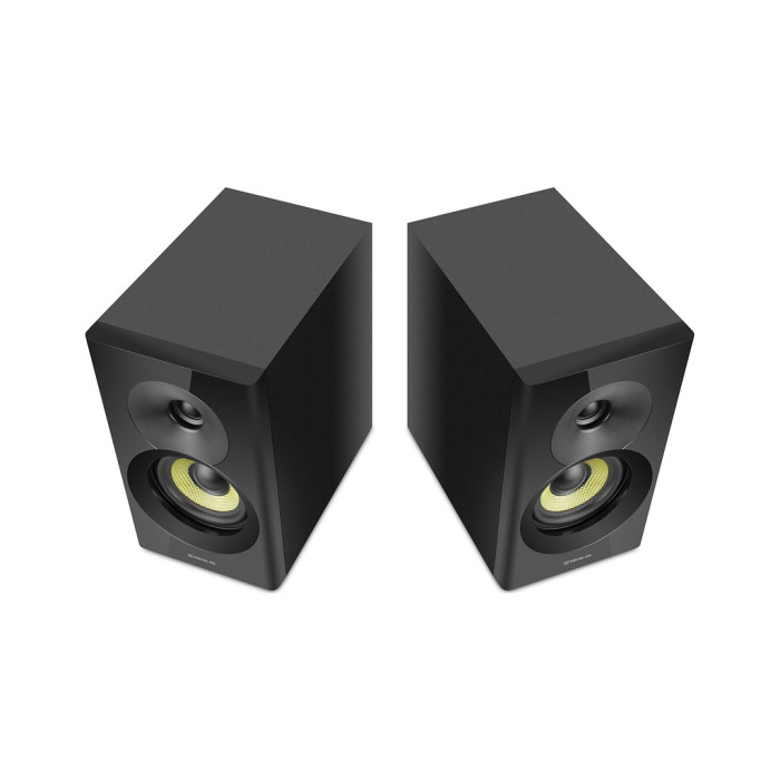 Дизайн системи не залишить байдужим поціновувачів стилю. Корпус виготовлений із міцної деревини (MDF) та якісного пластику, що не лише підкреслює якість, але й додає інтер’єру нотку сучасного мистецтва. Компактний поличний формат дозволяє зручно розмістити акустику на будь-якій поверхні, без шкоди для стилю чи функціональності.