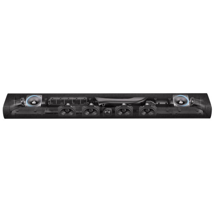 Harman Kardon Enchant 900 — це стильний та потужний саундбар, який створює обʼємне 3D‑звучання з підтримкою Dolby Atmos та MultiBeam. Він гармонійно доповнить сучасний інтер’єр, надає можливість під’єднатися через Wi‑Fi, Bluetooth, AirPlay або Chromecast, та гарантує чистий і насичений звук для музики, фільмів і серіалів. Для більш глибокого басу до нього додається бездротовий сабвуфер Enchant Sub, а пара компактних Enchant Speaker дозволяє розширити систему до повноцінного просторового звучання — все це працює як єдиний набір для комфортного домашнього кінотеатру або музичної системи.