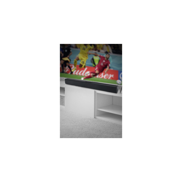 Якщо у вас немає тумби під телевізором або на ній недостатньо вільного місця, саундбар можна успішно розмістити на стіні. Пристрій можна повісити вертикально або горизонтально, з боку телевізора, під ним або над ним. Налаштуйте розташування саундбара відповідно до ваших потреб!
