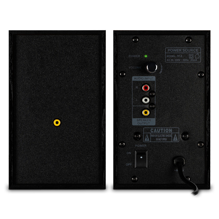Для зручності підключення, система обладнана входами mini Jack 3.5 мм і 2 RCA, що дозволяє легко інтегрувати їх у ваш комп'ютерний сетап. Живлення колонок здійснюється від мережі, гарантує безперебійну роботу та стабільну якість звучання.