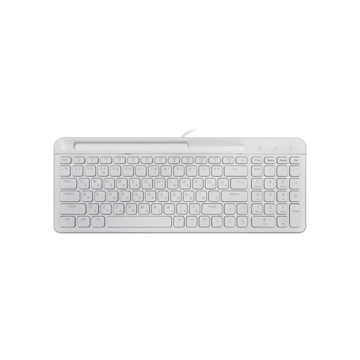 Повнорозмірний формат клавіатури з англійською та українською розкладками забезпечує зручність при введенні тексту, задовольняючи навіть найвибагливіших користувачів. Компактний дизайн клавіатури дозволяє зберегти цінний простір на вашому столі, а елегантний білий колір корпусу забезпечує стильний вигляд робочого місця.