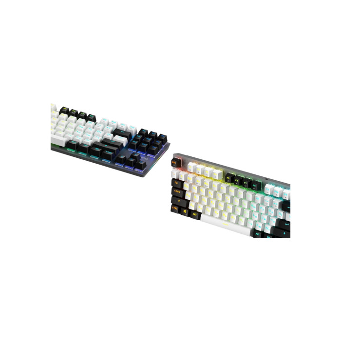 Вишуканий дизайн клавіатури, виконаний у форм-факторі TKL (TenKeyLess), забезпечує більше простору для руху миші, що особливо важливо для геймерів. Скелетон конструкція додає стилю, а використання PBT Double Injection кейкапів гарантує довговічність і чіткість символів навіть після тривалого використання. RGB-підсвічування не тільки підкреслює модерний вигляд клавіатури, але й дає змогу налаштовувати індивідуальні ефекти, що створюють особливу атмосферу під час гри.
