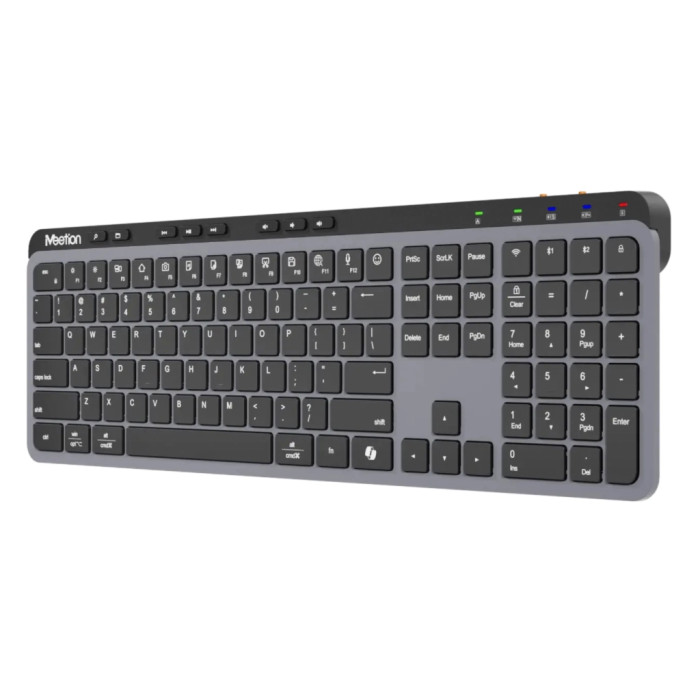 Основною перевагою клавіатури Meetion WK330 є її бездротова свобода, завдяки підтримці USB адаптера 2.4 ГГц та Bluetooth. Це забезпечує легке перемикання між пристроями без зайвих зусиль та дозволяє працювати на відстані до 10 метрів. Ви також неодмінно відзначите легкість і витончений дизайн клавіатури, який дозволяє їй гармонійно вписуватися в будь-яку атмосферу. Тонкий корпус товщиною лише 12 мм робить її стильним елементом на вашому столі.
