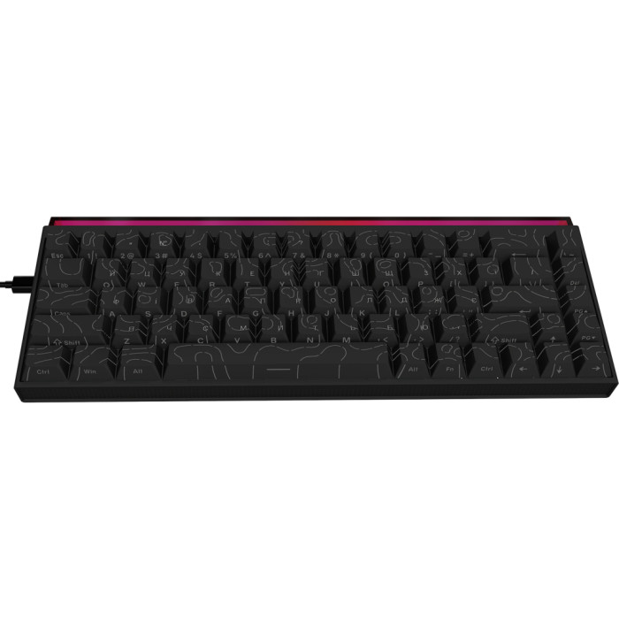 ігрова, з підсвіткою, механічна, дротова, USB, компактна, Підсвічування - Rainbow LED, англійська, українська, Перемикачі (Switches) - Ajazz Red Switch, Клавіш - 68, змінні клавіші, для програміста, Шнур - 1.6 м, 327x114x34 мм, 510 г