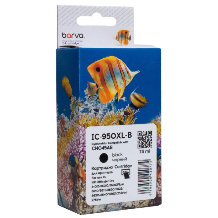 Струменевий картридж BARVA - це ідеальне рішення для всіх, хто шукає вигідну альтернативу оригінальним витратним матеріалам. Цей сумісний картридж дозволяє отримати високоякісні друковані матеріали без великих витрат. Одним з головних переваг струменевого картриджа BARVA є його легка установка та зручне користування. Ви можете швидко та без зайвих зусиль встановити картридж у ваш принтер і відразу почати друкувати. Картридж сумісний HP 950XL (CN045AE/CN049AE) 2300 арк, чорний Barva (IC-950XL-B) підходить для друку: ·        текстових документів, ·        презентаційних матеріалів, звітів, ·        фотографій та зображень з високою роздільною здатністю, ·        ілюстрацій, схем, графіків, ·        рекламних матеріалів. Колір даного картриджа - black (чорний), він підходить для використання в друкуючих пристроях HP Крім того, струменевий картридж BARVA має високу якість друку протягом всього ресурсу, що складає - 73. Ви отримаєте чіткі та насичені кольори, які відтворюються з високою точністю. Ваші документи та фотографії будуть виглядати професійно і якісно. Ще одна важлива перевага струменевого картриджа BARVA полягає в його надійності. Він не тільки забезпечує високу якість друку, але й не впливає на роботу принтера. Ви можете бути впевнені, що принтер працюватиме бездоганно. Загалом, струменевий картридж BARVA - це вигідна альтернатива оригінальним витратним матеріалам, яка поєднує в собі зручність використання, високу якість друку та надійність. Важливо! Перед тим, як замовити Картридж сумісний HP 950XL (CN045AE/CN049AE) 2300 арк, чорний Barva (IC-950XL-B), уважно перевірте його сумісність із вашим пристроєм друку.