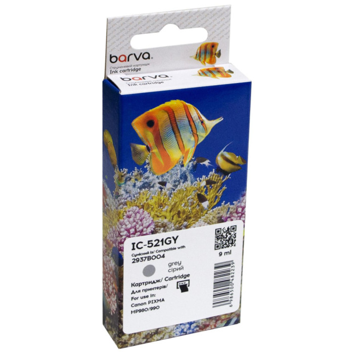 Струменевий картридж BARVA - це ідеальне рішення для всіх, хто шукає вигідну альтернативу оригінальним витратним матеріалам. Цей сумісний картридж дозволяє отримати високоякісні друковані матеріали без великих витрат. Одним з головних переваг струменевого картриджа BARVA є його легка установка та зручне користування. Ви можете швидко та без зайвих зусиль встановити картридж у ваш принтер і відразу почати друкувати. Картридж сумісний Canon CLI-521GY (2937B004) 1400 арк, сірий Barva (IC-521GY) підходить для друку: ·        текстових документів, ·        презентаційних матеріалів, звітів, ·        фотографій та зображень з високою роздільною здатністю, ·        ілюстрацій, схем, графіків, ·        рекламних матеріалів. Колір даного картриджа - grey (сірий), він підходить для використання в друкуючих пристроях Canon Крім того, струменевий картридж BARVA має високу якість друку протягом всього ресурсу, що складає - 9. Ви отримаєте чіткі та насичені кольори, які відтворюються з високою точністю. Ваші документи та фотографії будуть виглядати професійно і якісно. Ще одна важлива перевага струменевого картриджа BARVA полягає в його надійності. Він не тільки забезпечує високу якість друку, але й не впливає на роботу принтера. Ви можете бути впевнені, що принтер працюватиме бездоганно. Загалом, струменевий картридж BARVA - це вигідна альтернатива оригінальним витратним матеріалам, яка поєднує в собі зручність використання, високу якість друку та надійність. Важливо! Перед тим, як замовити Картридж сумісний Canon CLI-521GY (2937B004) 1400 арк, сірий Barva (IC-521GY), уважно перевірте його сумісність із вашим пристроєм друку.