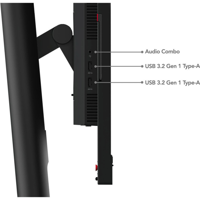 Lenovo T24mv-30 також має чудові можливості для підключення, що підкреслюють його універсальність. Наявність портів HDMI, 2 x DisplayPort, 4 x USB 3.2, USB Type-C, RJ-45, USB Type-B і 3.5 мм Mini-Jack дозволяє з легкістю інтегрувати монітор у вашу робочу станцію, проводити відеоконференції завдяки вбудованій веб-камері та використовувати вбудовані колонки потужністю по 5 Вт для якісного звуку.
