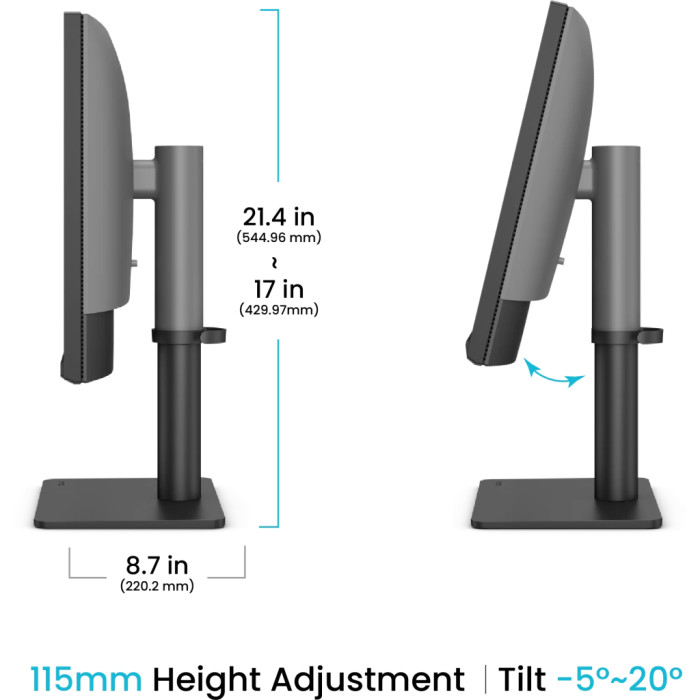 Регулювання положення екрана дозволяє ідеально підлаштувати монітор під ваші потреби: змінити висоту, нахил, поворот, навіть орієнтацію завдяки Pivot та Swivel функціям. Кріплення VESA 100x100 мм полегшує монтаж на стіну, що економить робочий простір.