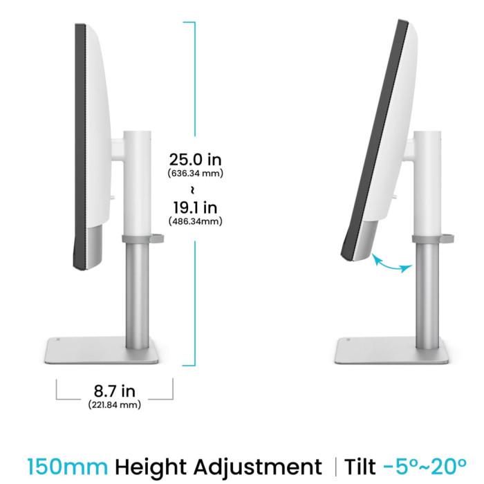 Естетика і функціональність зливаються у одне зручне та стильне рішення завдяки можливостям ергономічного регулювання. Ви легко можете виставити монітор на потрібну висоту, нахил або обертати його на 90° для портретного використання. Функція Swivel дозволяє налаштувати екран під будь-який потрібний кут, що робить роботу з ним ще більш комфортною. Монітор підтримує VESA-сумісність (100x100 мм) для надійного кріплення на кронштейнах та підвищення гнучкості в організації робочого простору.