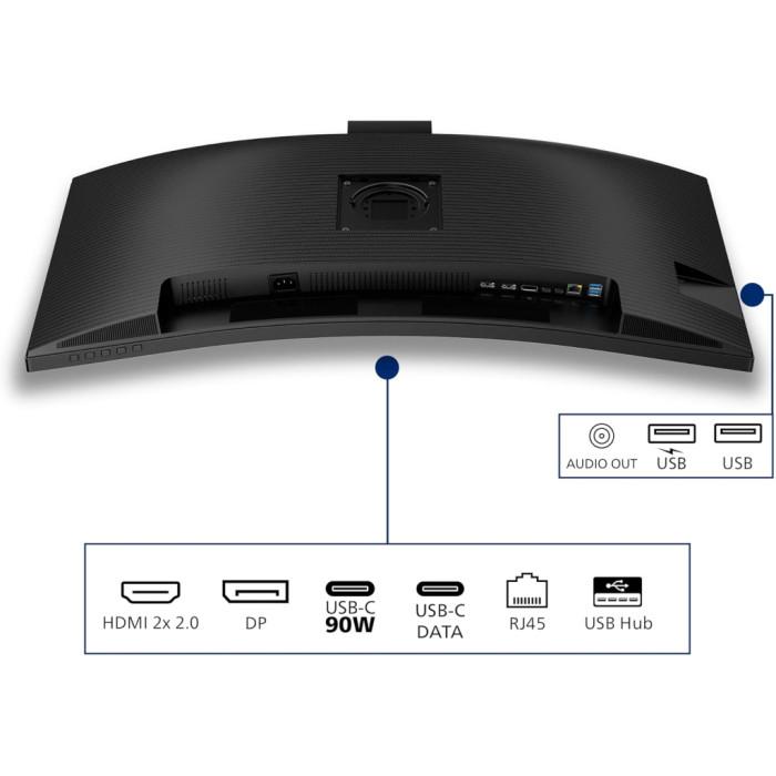 Переосмислення продуктивності робочих процесівЗавдяки інтелектуальному KVM-перемикачу, перемикання між джерелами відбувається без шкоди для якості зображення. Такі функції, як USB-C і висувна веб-камера з підтримкою Windows Hello, забезпечують очікувану продуктивність і зручність.VA-дисплей забезпечує приголомшливе зображення з широкими кутами оглядуУ дисплеї Philips VA LED використовується передова технологія багатодоменного вертикального вирівнювання, що забезпечує надвисоку статичну контрастність для отримання дуже яскравих і насичених зображень. Він легко справляється зі стандартними офісними додатками, але особливо добре підходить для перегляду фотографій, веб-серфінгу, фільмів, ігор і ресурсномістких графічних додатків. Оптимізована технологія керування пікселями забезпечує надширокий кут огляду 178/178 градусів, що призводить до чіткого зображення.1.07 мільярда кольорів для плавних колірних переходів і високої деталізації10-бітний дисплей забезпечує насичену глибину кольору з 1.07 мільярдами кольорів і 12-бітовим внутрішнім опрацюванням для відтворення плавних, природних кольорів без градацій або колірних смуг.Вигнутий дизайн дисплея для більш повного занурення в те, що відбувається.Настільні монітори забезпечують персоналізований користувацький досвід, що дуже добре підходить для вигнутого дизайну. Вигнутий екран створює приємний, але ненав'язливий ефект занурення, фокусуючи увагу на вас у центрі робочого столу.Вбудовані стереодинаміки для мультимедіаПара високоякісних стереодинаміків, вбудованих у дисплей. Залежно від моделі та конструкції, вони можуть бути спрямовані вперед, вниз, вгору, вгору, назад тощо, а також можуть бути невидимими.Захист від синього світла і точність передачі кольору, сертифіковані за стандартом EyesafeДисплей Philips відповідає стандарту eyesafe CERTIFIED 2.0, що забезпечує справжній захист від тривалого впливу синього світла. Постійно ввімкнений фільтр синього світла не тільки допомагає знизити навантаження на очі під час роботи з цифровими пристроями, а й гарантує цілісність передачі кольору.Функція MultiView забезпечує одночасне підключення та перегляд двох додатківЗавдяки дисплею Philips MultiView надвисокої роздільної здатності ви тепер можете відкрити для себе світ можливостей підключення. MultiView забезпечує активне подвійне під'єднання і перегляд, даючи змогу одночасно працювати з декількома пристроями, як-от ПК і ноутбук, для виконання складних багатозадачних операцій.Нахиляйте, повертайте та регулюйте висоту для ідеального положення переглядуКомпактна ергономічна підставка Compact Ergo Base - це зручна у використанні підставка для монітора Philips, яка нахиляється, повертається та регулюється за висотою, даючи змогу кожному користувачеві розташувати монітор для максимального комфорту та ефективності перегляду.SmartKVM: для зручного перемикання між джереламиНа відміну від традиційних вбудованих кнопок KVM-монітора, інтелектуальний KVM-перемикач дає змогу перемикатися між джерелами одним натисканням кнопки на клавіатурі. У разі правильного під'єднання всіх пристроїв користувачі можуть легко перемикатися між джерелами, тричі натиснувши клавішу «Ctrl».Технологія SoftBlue: для комфортного переглядуТехнологія SoftBlue забезпечує підвищений зоровий комфорт і захист від негативного впливу на здоров'я, спричиненого трив