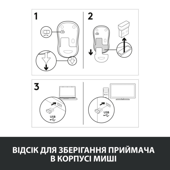 Logitech M185 оснащена вдосконаленою безпровідною технологією, яка гарантує миттєве підключення через USB адаптер 2.4 ГГц. Безперебійне з'єднання та відмінна стійкість до перешкод дозволяють зосередитися на роботі, не відволікаючись на технічні незручності, навіть якщо поряд працює багато інших бездротових пристроїв.
