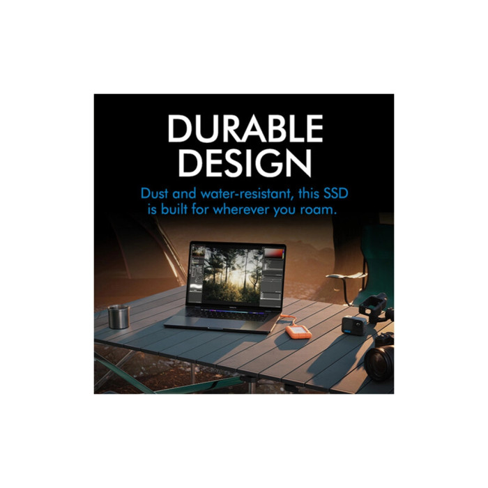 Накопичувач SSD USB Type-C 2TB Rugged Mini LaCie (STMF2000400) підкорить вас своєю міцністю, швидкістю та зручністю. Його передовий інтерфейс USB 3.2 Type-C забезпечує швидкість читання і запису до 2000 Мб/с, що перетворює процес резервного копіювання і перенесення даних на швидку та ефективну дію. Незалежно від того, чи ви користувач Mac, Windows чи iPad, досягнути безперебійного робочого процесу буде легко завдяки принципу «підключи і працюй».