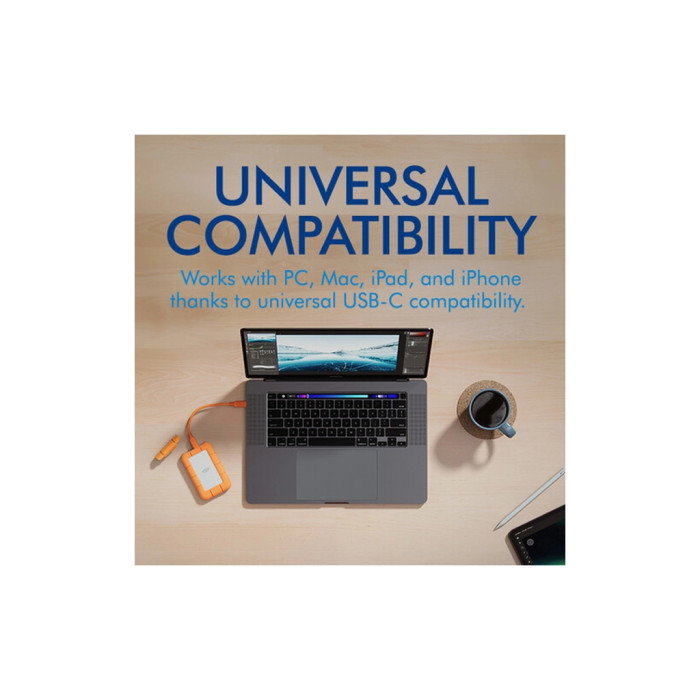 Універсальність пристрою проявляється в сумісності з iPad і iPhone через USB-C, що дозволяє моментально розширювати пам'ять вашого пристрою. Чудовий дизайн Ніла Поултона додає естетичної привабливості, роблячи LaCie Rugged Mini SSD справжнім технологічним шедевром. З ним ви збережете та захистите свої дані навіть у найсуворіших умовах.