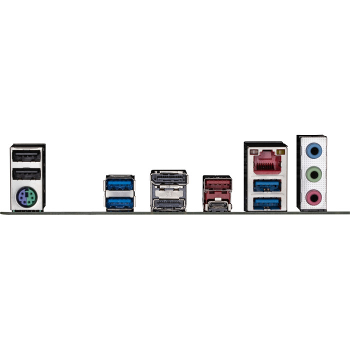 1 х USB 3.2 Gen2 Type-C, 4 x USB 3.2 Gen 1, 1 x USB 3.2 Gen 2 Type-A, 1 x RJ45, 2 x USB 2.0, 1 x PS/2, 1 x HDMI, 1 x DisplayPort, 3 x Audio