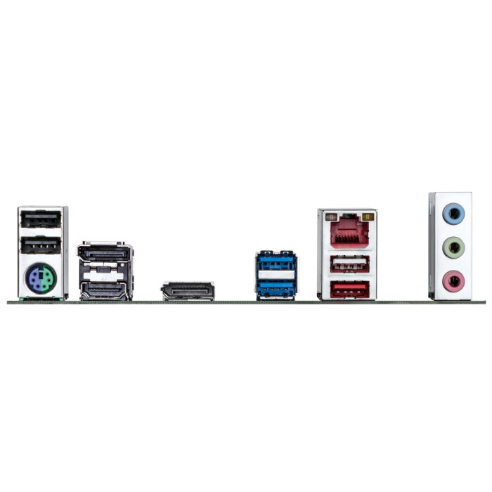 2 x DisplayPort, 2 x USB 3.2 Gen 1 Type-A, 1 x USB 3.2 Gen 2 10Gbps (Type-A), 1 x RJ45, 3 x USB 2.0, 1 x PS/2, 1 x HDMI, 3 x Audio